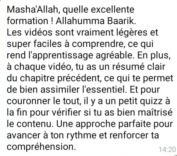Tu peux me contacter et me poser toutes les questions que tu souhaites à cette adresse (mouslimarketing@gmail.com).